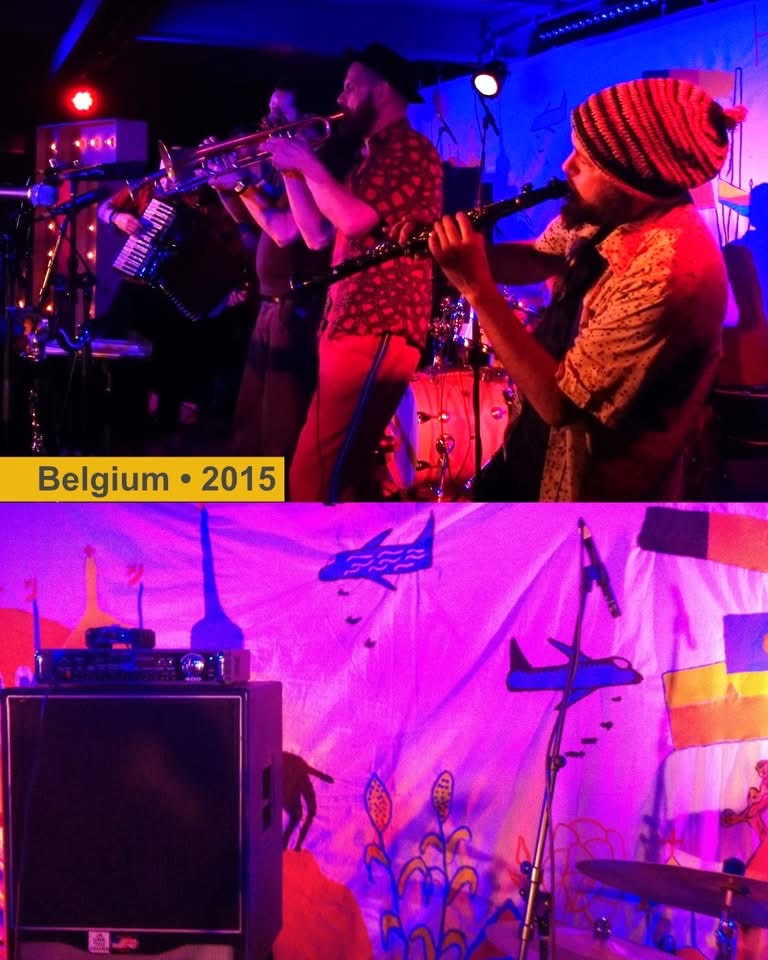 2011–2015 Zürich. Eeklo. Guestbooks signed. Crowds dancing. Anti-war backdrops behind the horns.