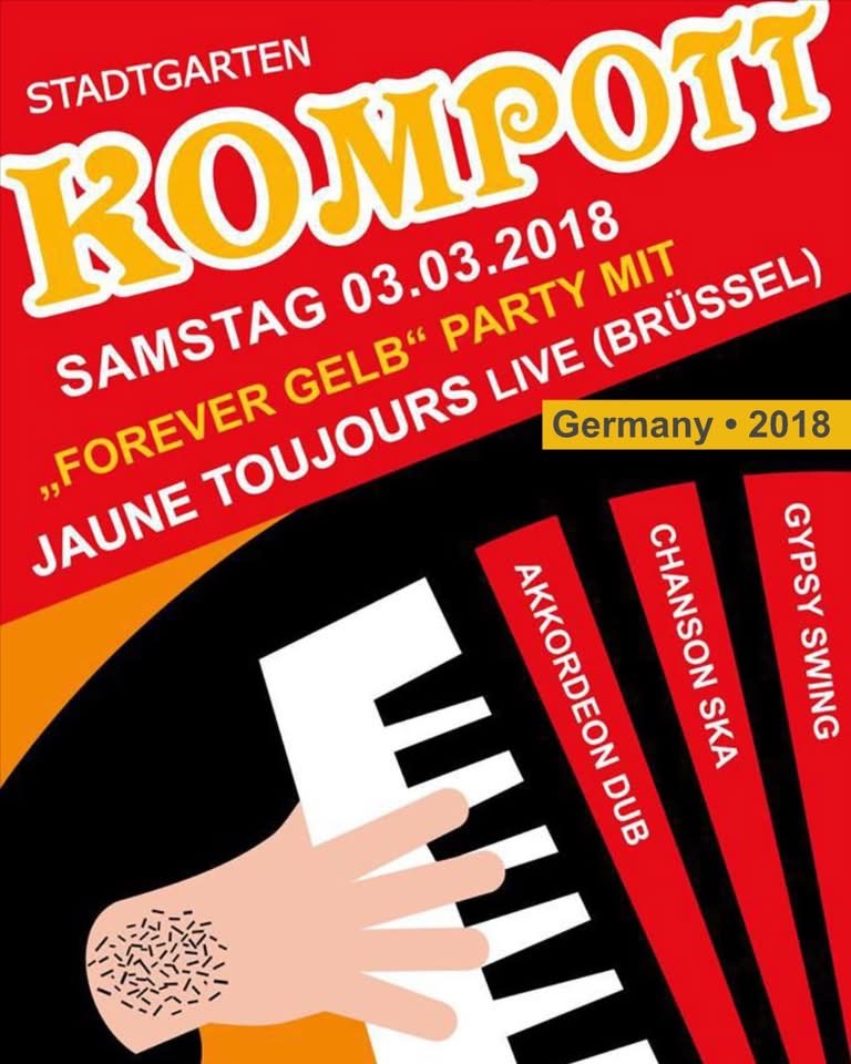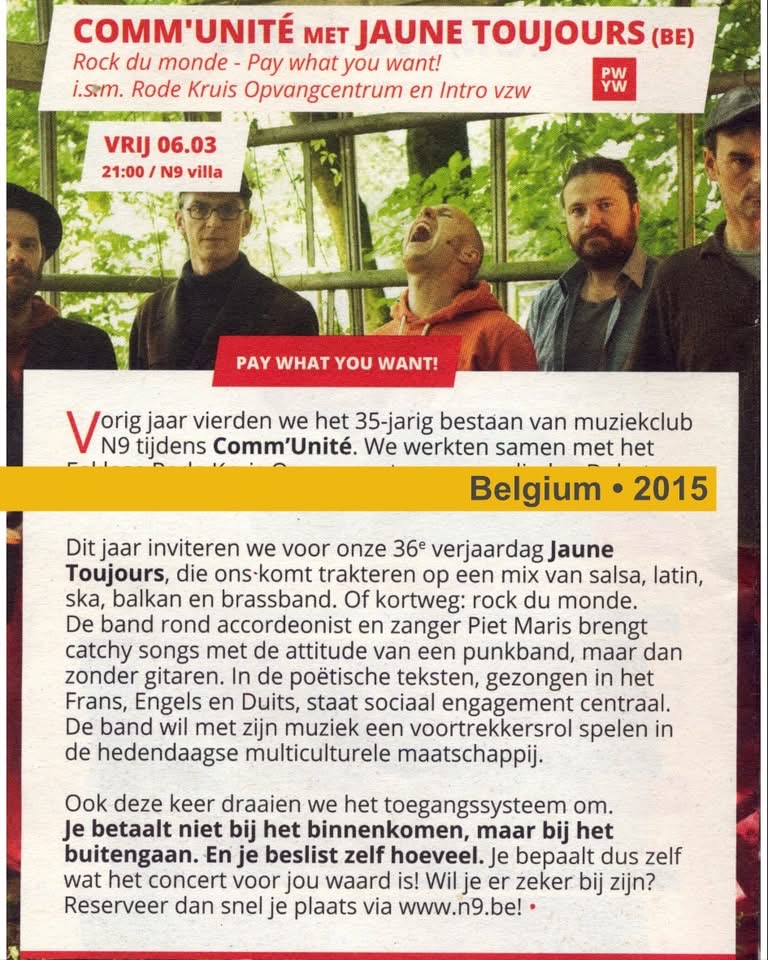 This week. Different years. Same band. 30 years on stage. Brussels based. Jaune Toujours.