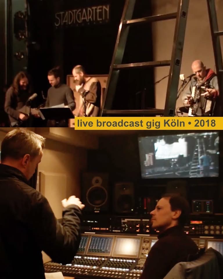 2018 Köln. Ladders on stage. Radio trucks outside. Soundcheck becomes broadcast.
