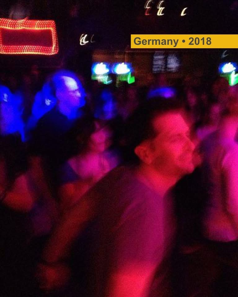 2005 Munich. After the gig. Fans on stage. Posters argue outside.
