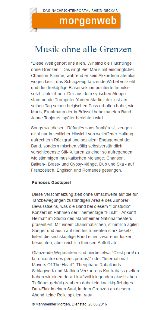 On July 24, Jaune Toujours set out for Mannheim to play in the National Theatre.