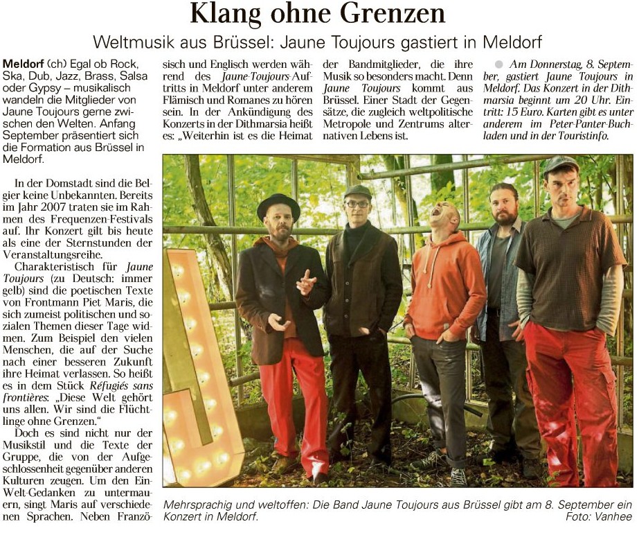 Jaune Toujours in der Meldorfer Presse, announcing the gig on 08 September 2016 in Ditmarsia, Meldorf!