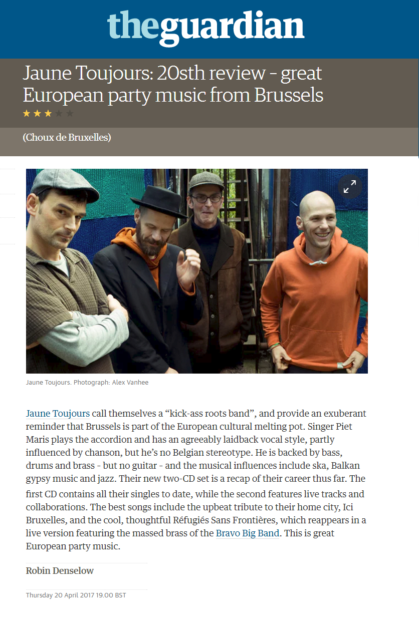 ’20sth’ – 3 star review in the Guardian: “great European party music from Brussels”