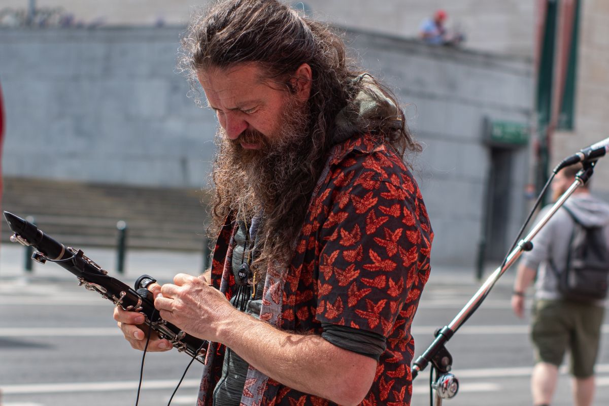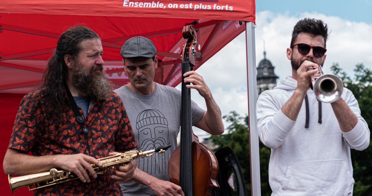Jaune Toujours Busking at the National Demo for Purchasing Power, Brussels