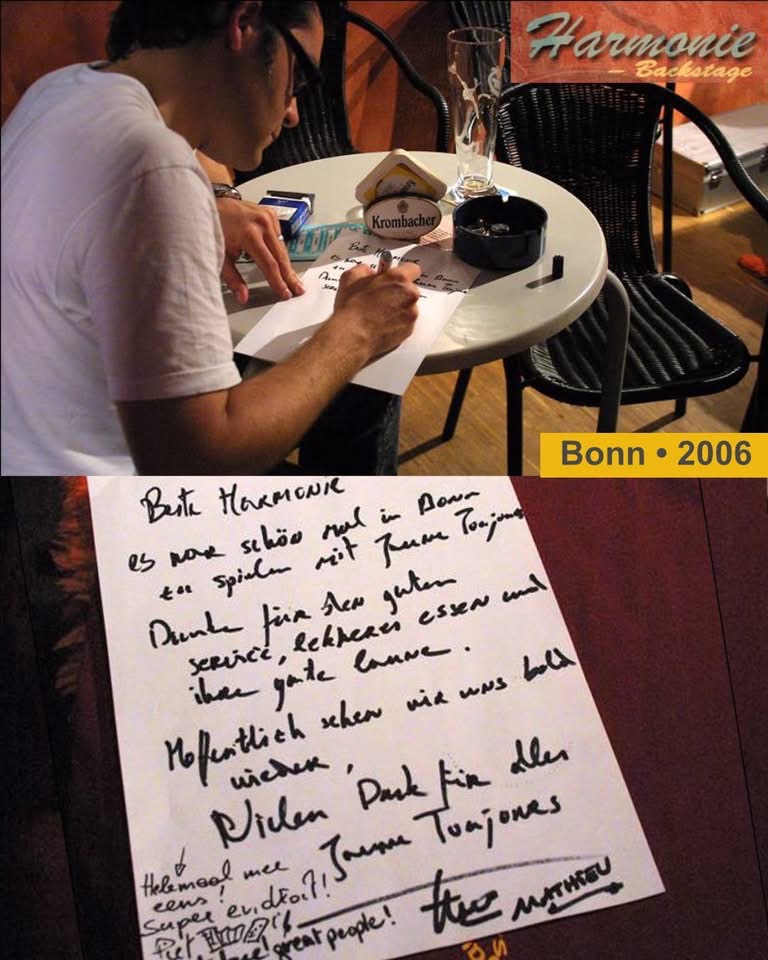 2006 Bonn. Harmonie. Guestbooks signed, sweat still drying.