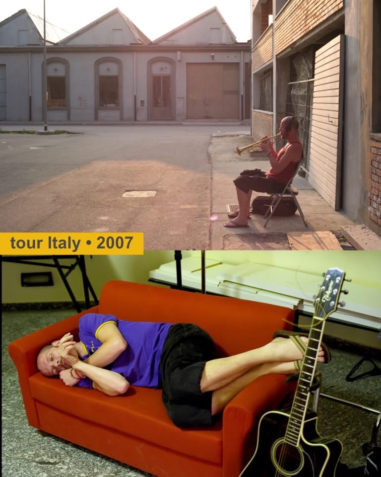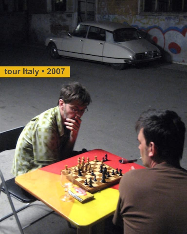 2007 Italy. Varese. Milano. Vercelli. Trumpets in parks. Chess on terraces. Fruit pie backstage. A speeding ticket as souvenir.